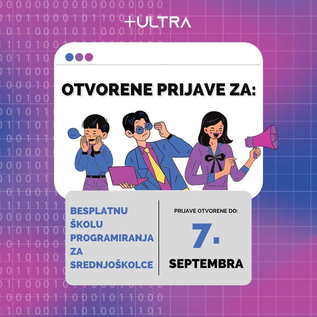 ❓ Želiš li steći osnovno znanje iz programiranja? Ili poboljšati već postojeće? Od septembra kreće peta edicija besplatne Škole programiranja Plus Ultra, i ovo je tvoja prilika da nam se priključiš!