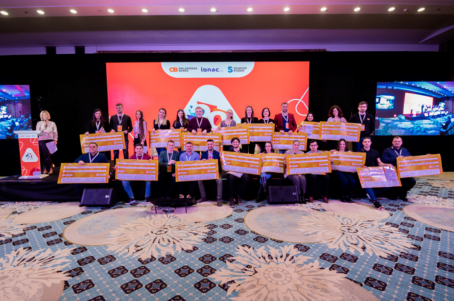 Na samom zatvaranju konferencije Helena Kreća i Sanja Kojić iz Omladinske banke su proglasile pobjednike i pobjednice i uručile čekove za 22 Omladinske banke.