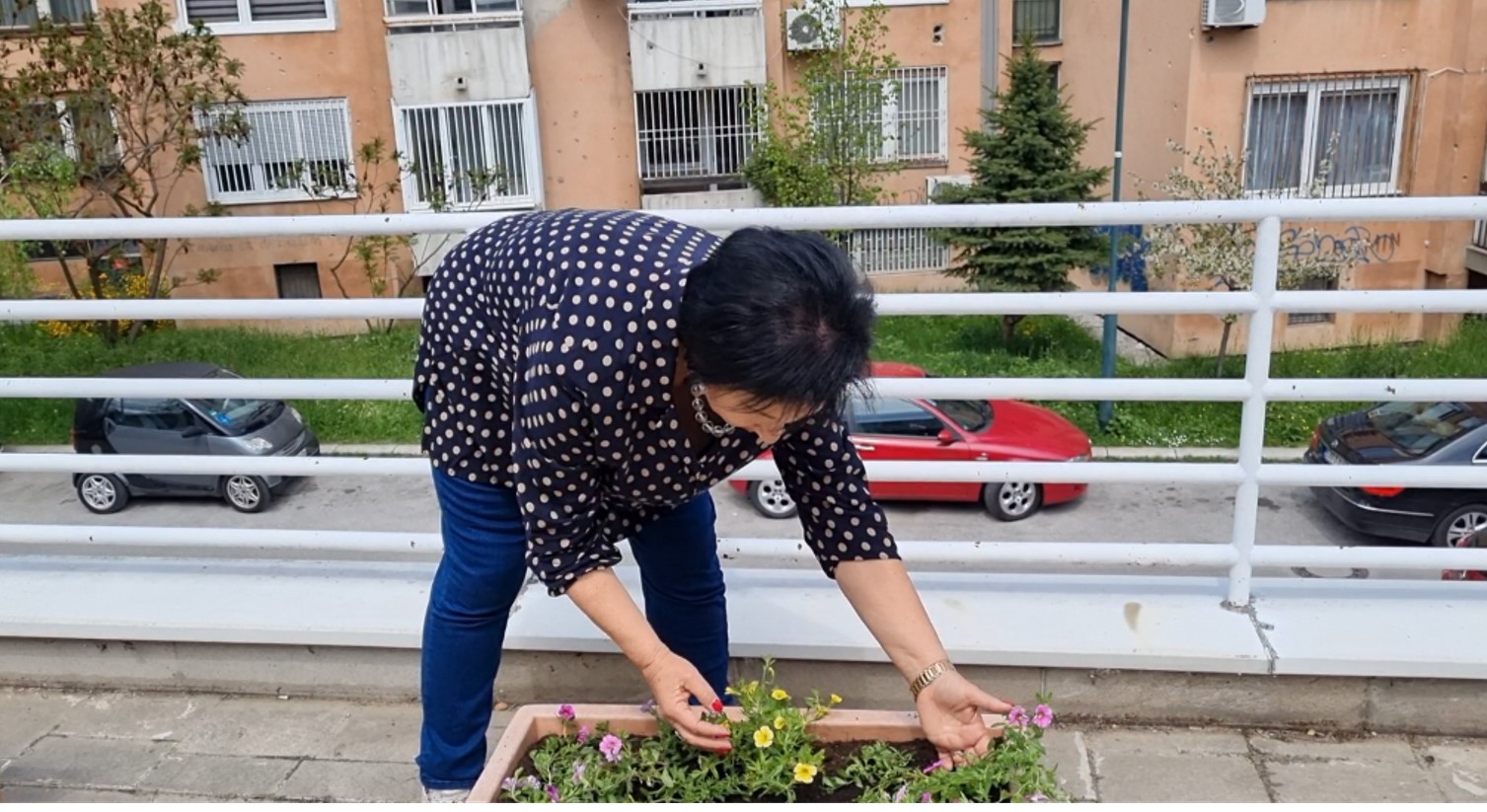 Dok smo sadili, razgovarali smo sa teta Suadom i teta Biljanom i teta Biljana nam je rekla: Divno, zar ne? Proljeće je došlo konačno na terasi našeg Centra za zdravo starenje. Sunce je i plavo je nebo, a to cvijeću treba. A cvijeće nama treba, za našu dušu, za naše srce, za sretan i dug život.