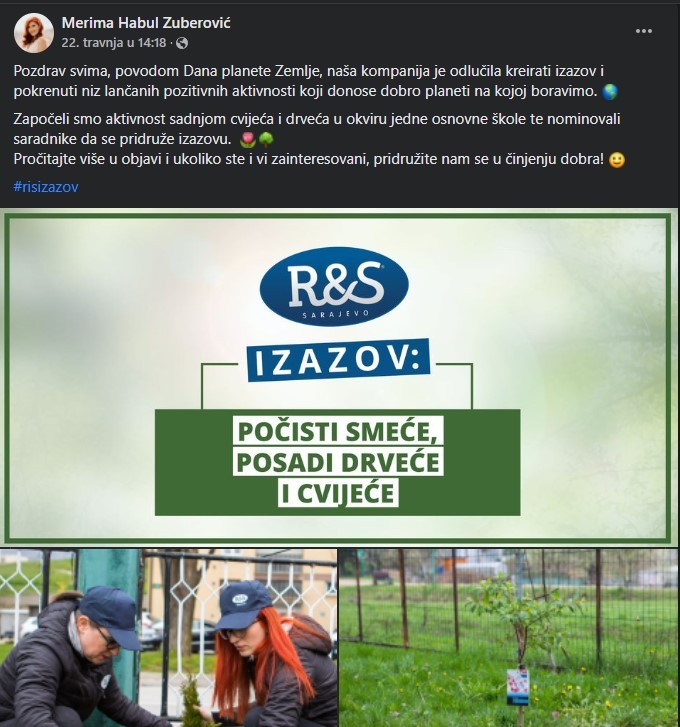 Kompanija R&S je obilježila Dan planete Zemlje uređenjem školskog dvorišta. I, kako to u izazovima biva, po završetku akcije, nominirali su Fondaciju Mozaik da uzme učešće u izazovu. Rado smo se odazvali i otišli u Centar za zdravo starenje Novi Grad gdje smo sa korisnicima i korisnicama sadili cvijeće i uljepšali vanjski prostor. Bilo je divno družiti se na suncu, brinuti o planeti Zemlji i našim najstarijim.