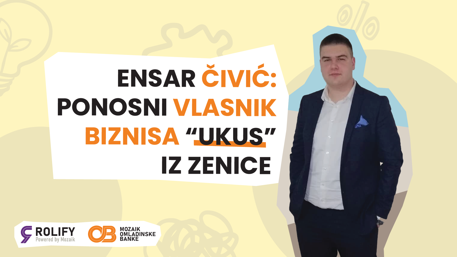 Dvadesettrogodišnji Ensar Čivić iz Zenice, student je Ekonomskog fakulteta i već skoro dvije godine preduzetnik i vlasnik biznisa Ukus. Ambiciozan po svojoj prirodi, jednog dana dok je bio u kupovini sa svojom mamom, primijetio je da na policama većine marketa nema onih „pravih domaćih“ proizvoda, odlučio je pokrenuti svoj biznis. Uskoro je nastao Ukus, brend koji u svojoj ponudi ima liniju tradicionalnih kolača kao što su tulumbe, hurmašice, baklave kao i jufke. Nakon pola godine poslovanja, Ensar širi kapacitete poslovanja i pokreće proizvodnju i prodaju pita.