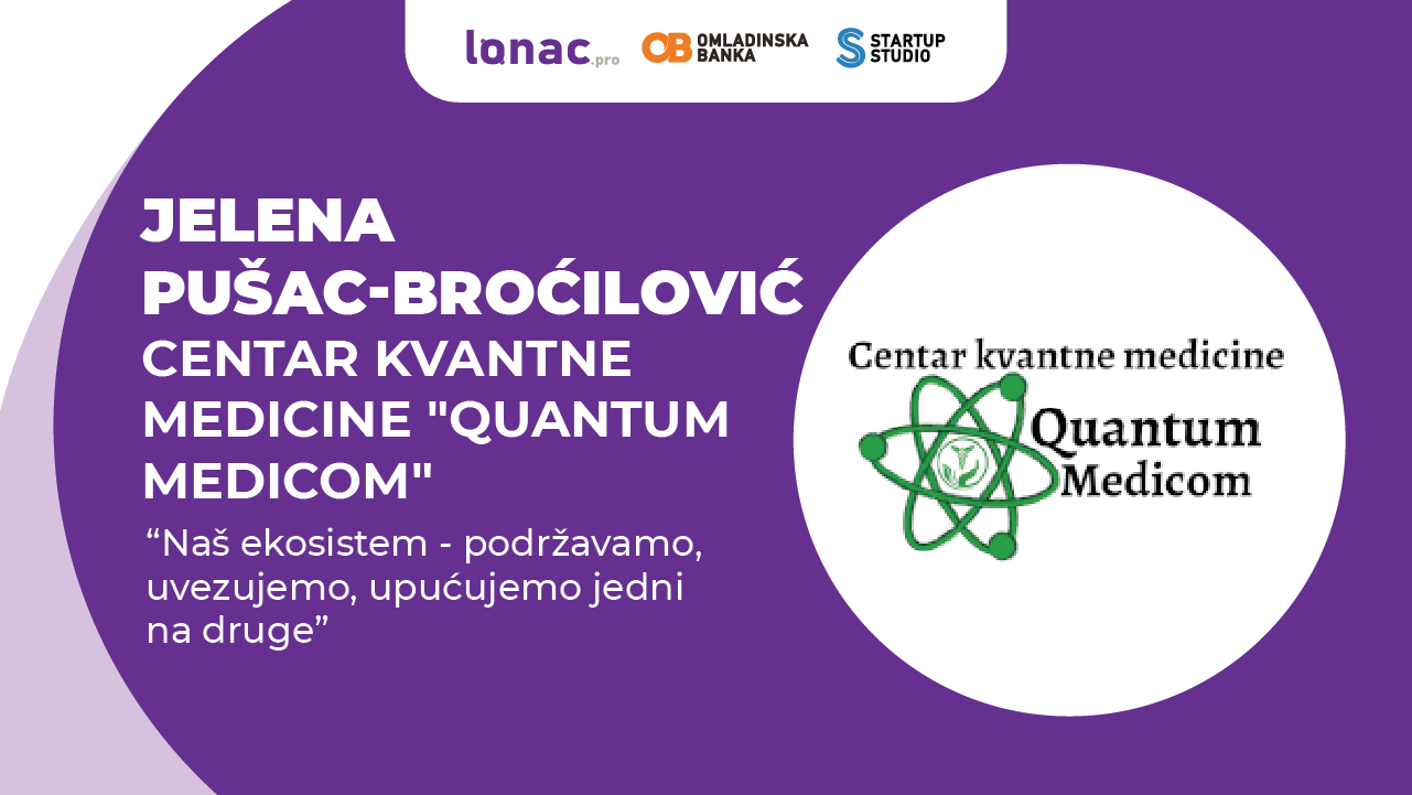 Otišla je na edukaciju u Zagreb, a vratila se sa preduzetničkom idejom a ni lokalni ljekari nisu htjeli da podrže. Ideju je podržao tata, onoliko koliko je mogao, ali Jelena je sanjala veliki centar kvantne medicine, tražila je prilike i pronašla Startup studio. Ubrzo njena ideja je postala biznis, a Jelena Pušac-Broćilović uspješna preduzetnica, direktorica Centra Kvantne Medicine Quantum Medicom. Posljednjih godina, Jelena razvija još jedan uspješan biznis – Srijemuš La Vita koji se bavi inovativnom proizvodnjom proizvoda o divjeg bijelog luka (srijemuš), a njeni proizvodi su nagrađeni brojnijm nagradama. Jelena i ja smo razgovarale o njenom prvom biznisu.