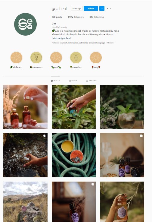 Ružica Ivanović, dvadesetosmogodišnja nomadka u Hercegovini svakodnevno živi svoju povezanost sa ljekovitim biljem. Rođena je u Beogradu, a odrasla u Banjaluci. Prije tri godine, inspirirana boravkom na planini, u želji da hercegovačko ljekovito bilje i procese njegove obrade približi turistima, oživjela je brend Gea Heal koji danas vodi sa kolektivom mladih ljudi u i oko Mostara. Ekipa već dugo mašta da napravi mali projektni destilator koji će biti lako pokretan i da omoguće i kupanje u cvijeću kroz sistem aroma kupke pod vedrim nebom.