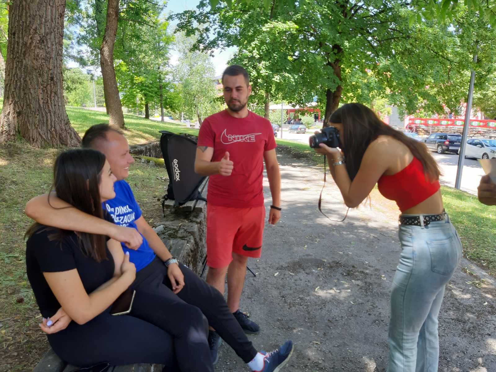 scenarijima. Fotografisali su jedni druge, a najuzbudljiviji dio projekta bio je terenski rad u prirodi grada Drvara. Polaznici su imali priliku da primijene svoje naučene veštine fotografisanja na stvarnim scenama. Obišli su različite lokacije unutar grada, kao i okolna prirodna područja. Fotografisali su prirodne ljepote, urbani pejzaž i lokalne znamenitosti. Ovaj dio projekta omogućio je polaznicima da primijene tehničke koncepte u stvarnom okruženju, istovremeno razvijajući svoju kreativnost i estetski senzibilitet i tako na zanimljiv
