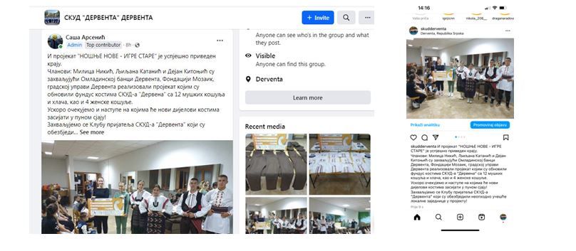 Realizacija projekta je predstavljena na društvenim mrežama SKUD-a „Derventa“ (FB i Instagram profilu):
