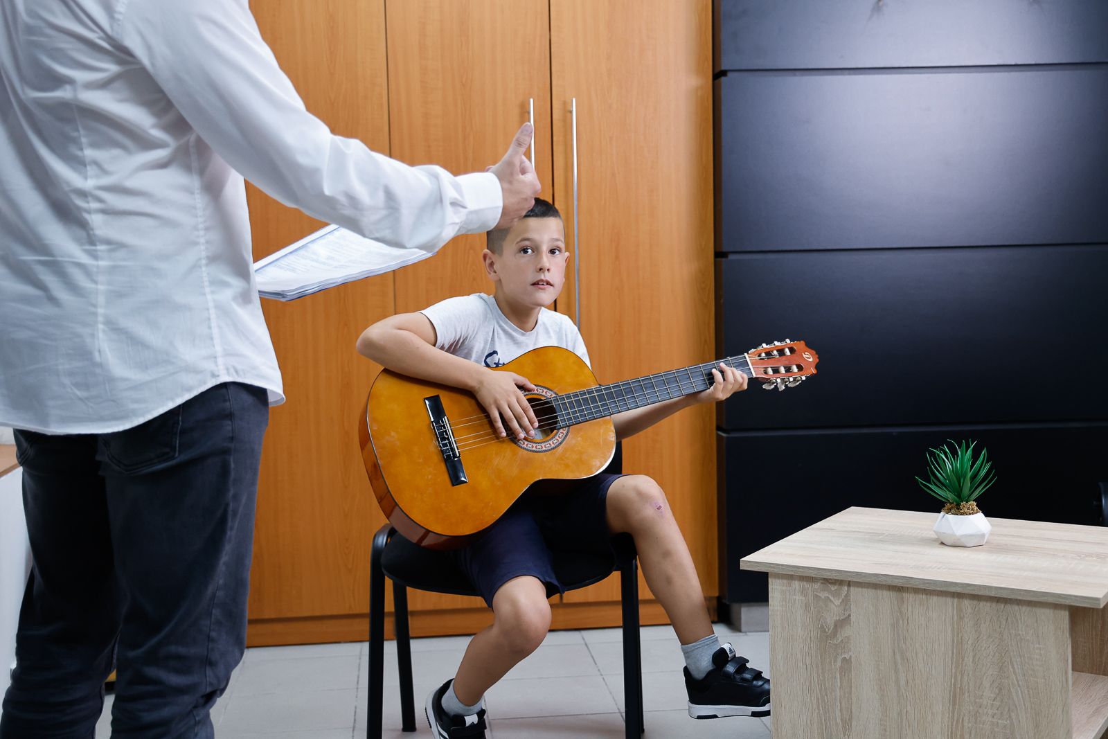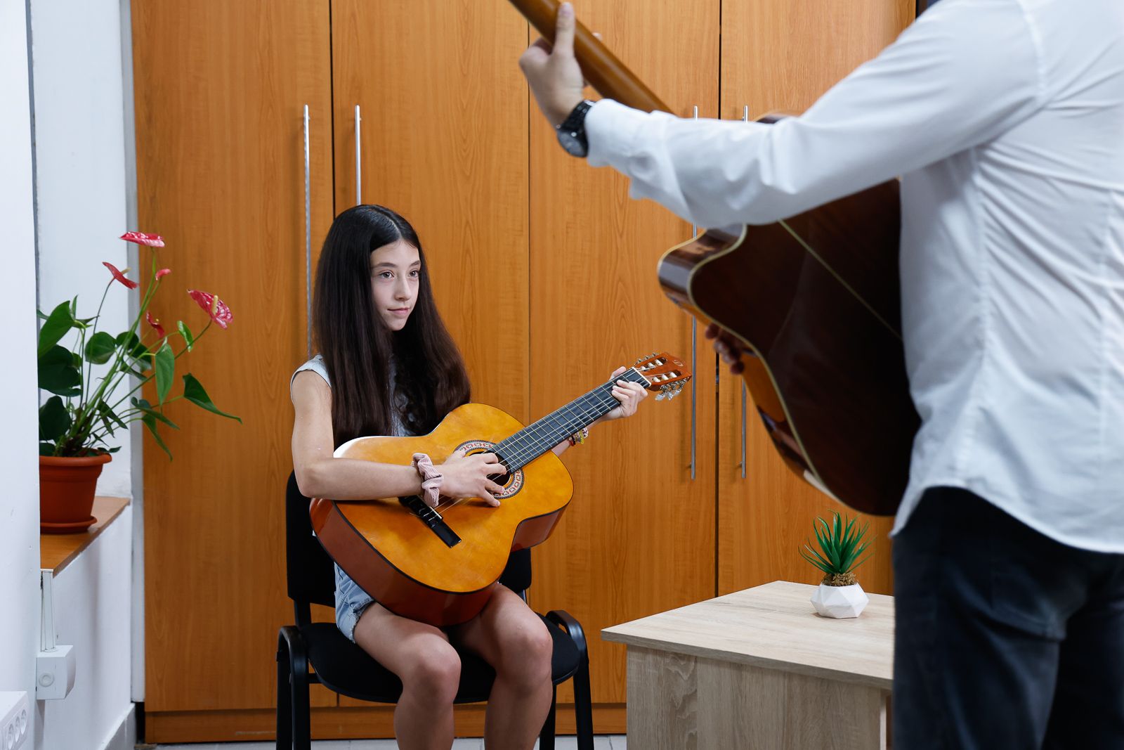 Profesor koji je bio angažovan na period od mjesec dana je za potrebe škole ustupito svoje 3 gitare, udžbenike za početnike i zvučne primjere. Profesor je bio angažovan 21 radni dan na principu individualne nastave (pojedinačno sa jednim polaznikom) osim grupnih radionica kada je prisustvovalo po 3 učenika. Čas je trajao 45 minuta.