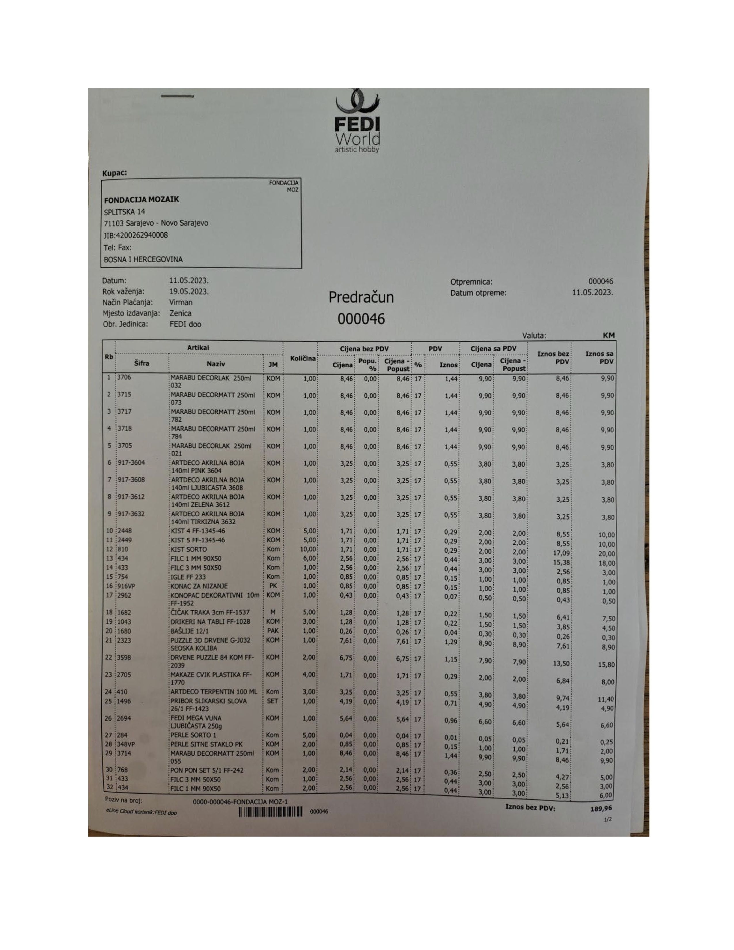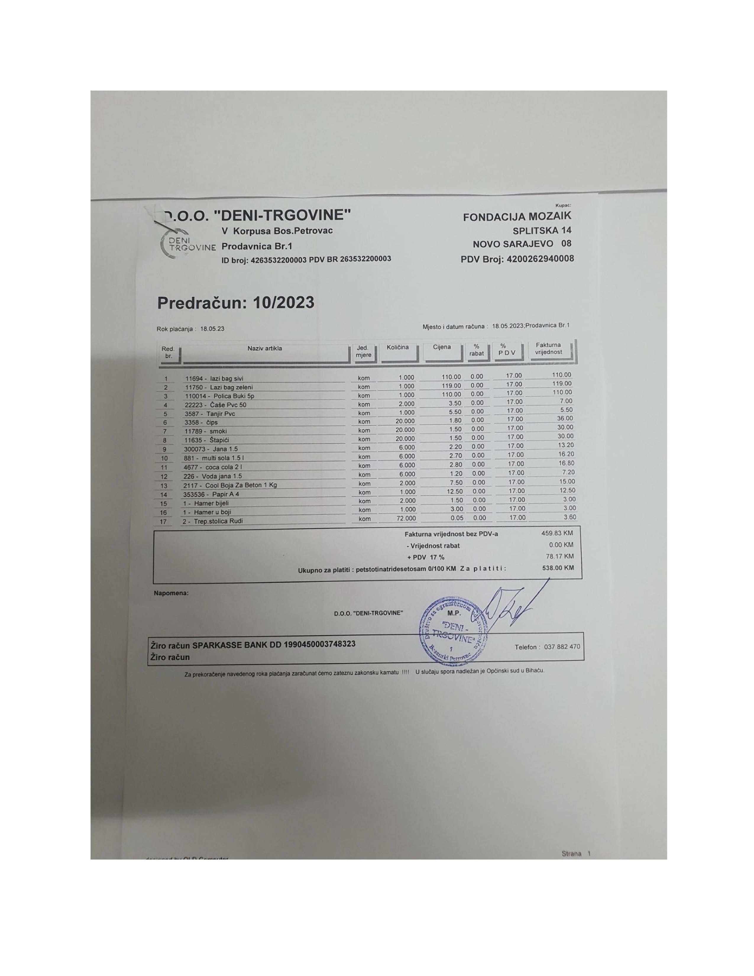 podršku. Osim toga stigao nam je i mnogi didaktički materijal, školski pribor a i naravno ništa bez oruđa za rad (tabla, krede, bojanke, olovke..)