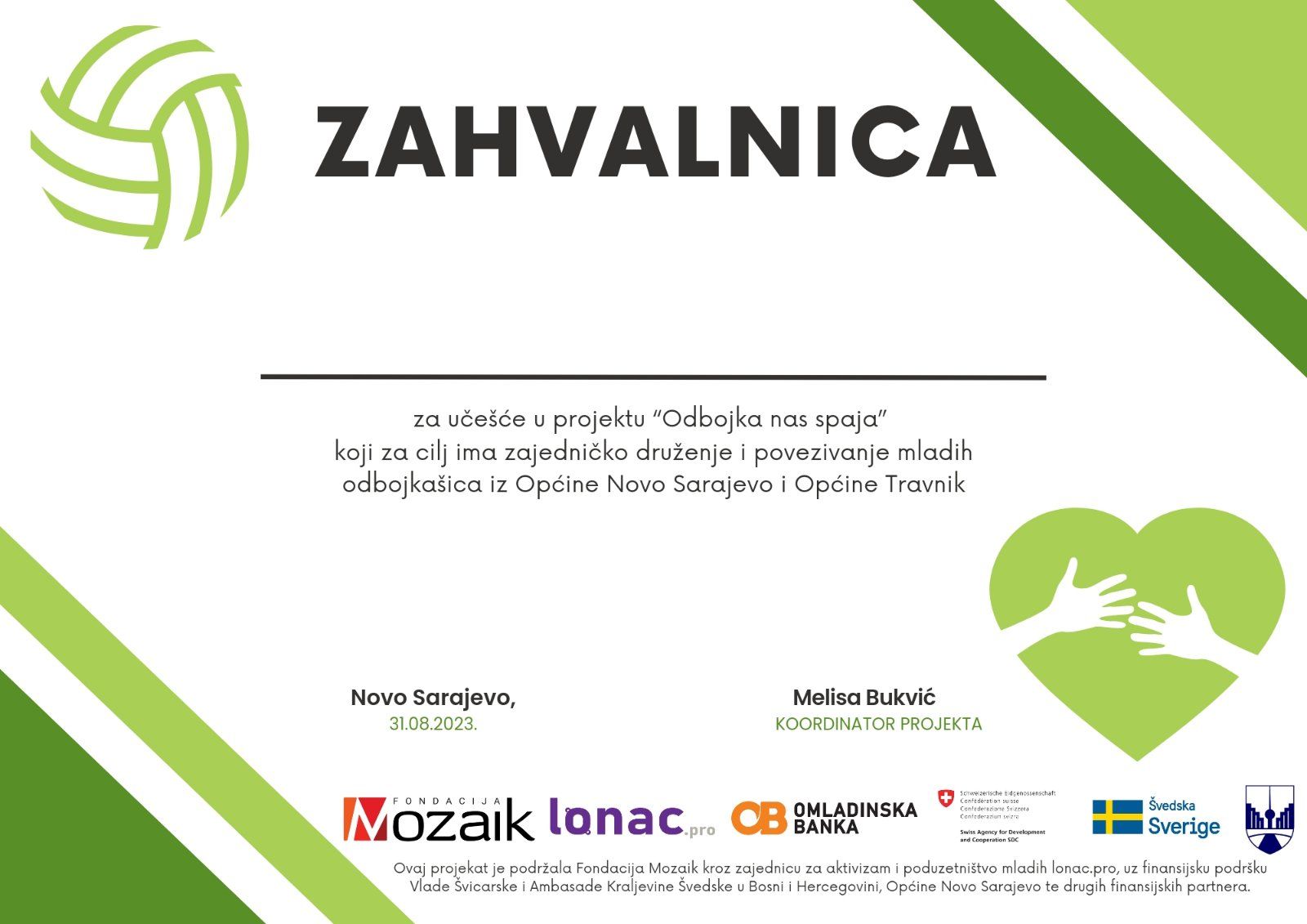Projekat “Odbojka nas spaja“ sa kojim smo aplicirali kod Omladinske banke Novo Sarajevo je dobio finansijsku podriku Fondacije Mozalk. Naš tim je odmah nakon potpisivania ugovora pristupio planiranju i realizaciji projektnith aktivnosti koje smo planirali.