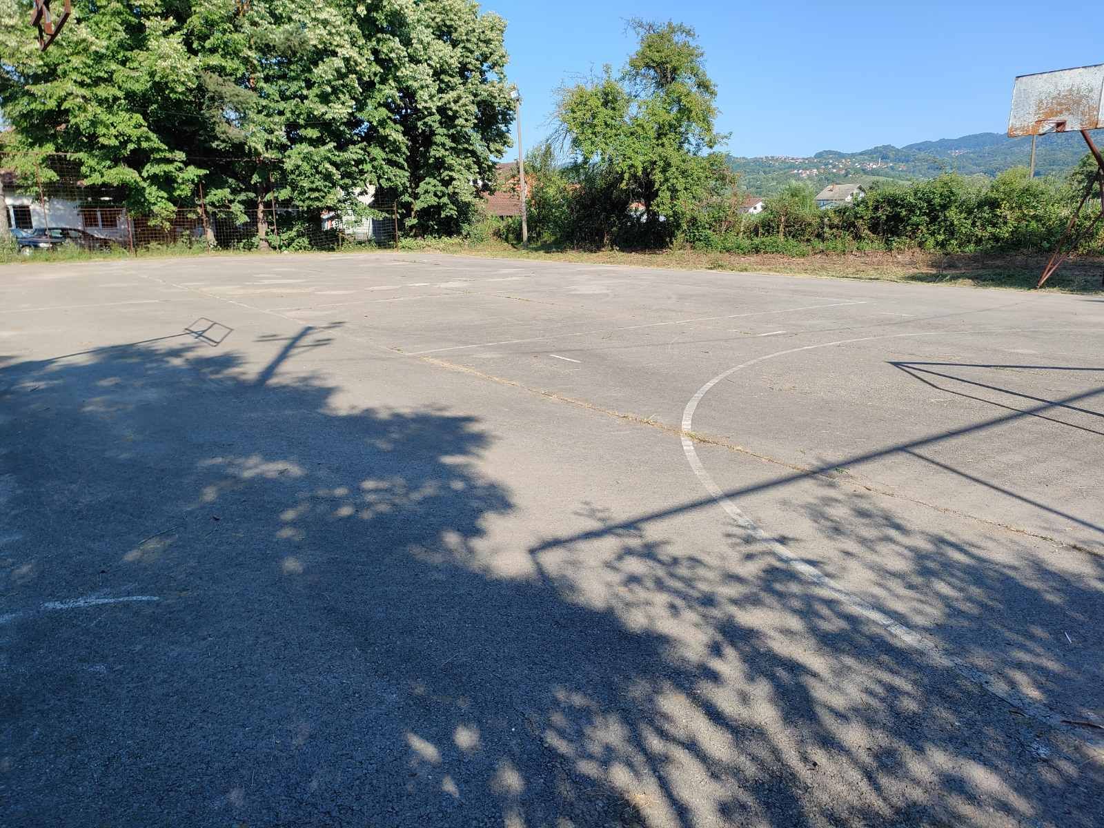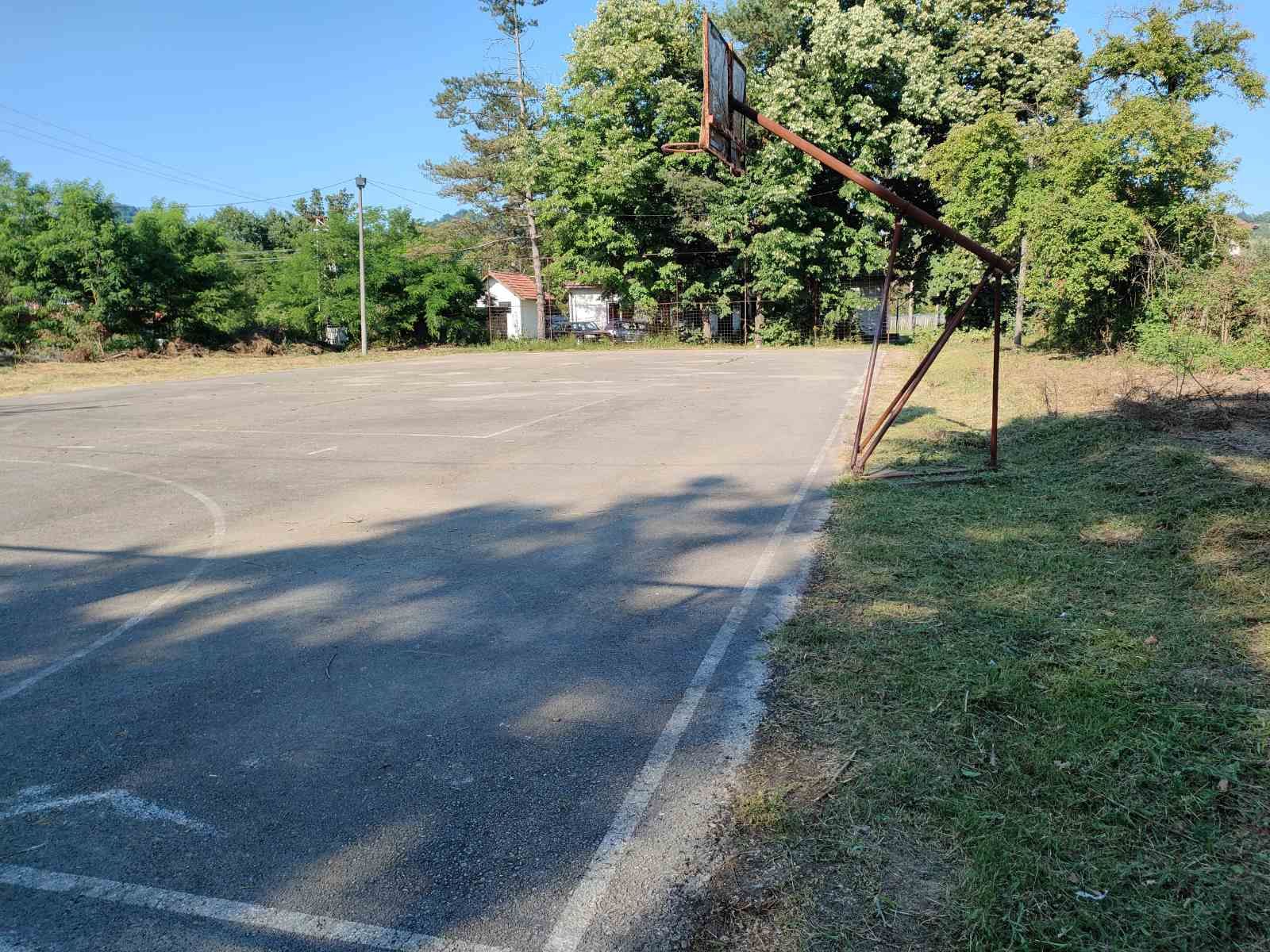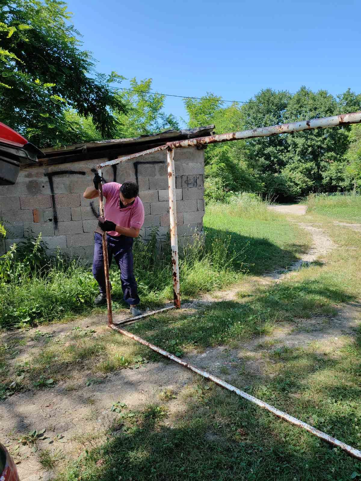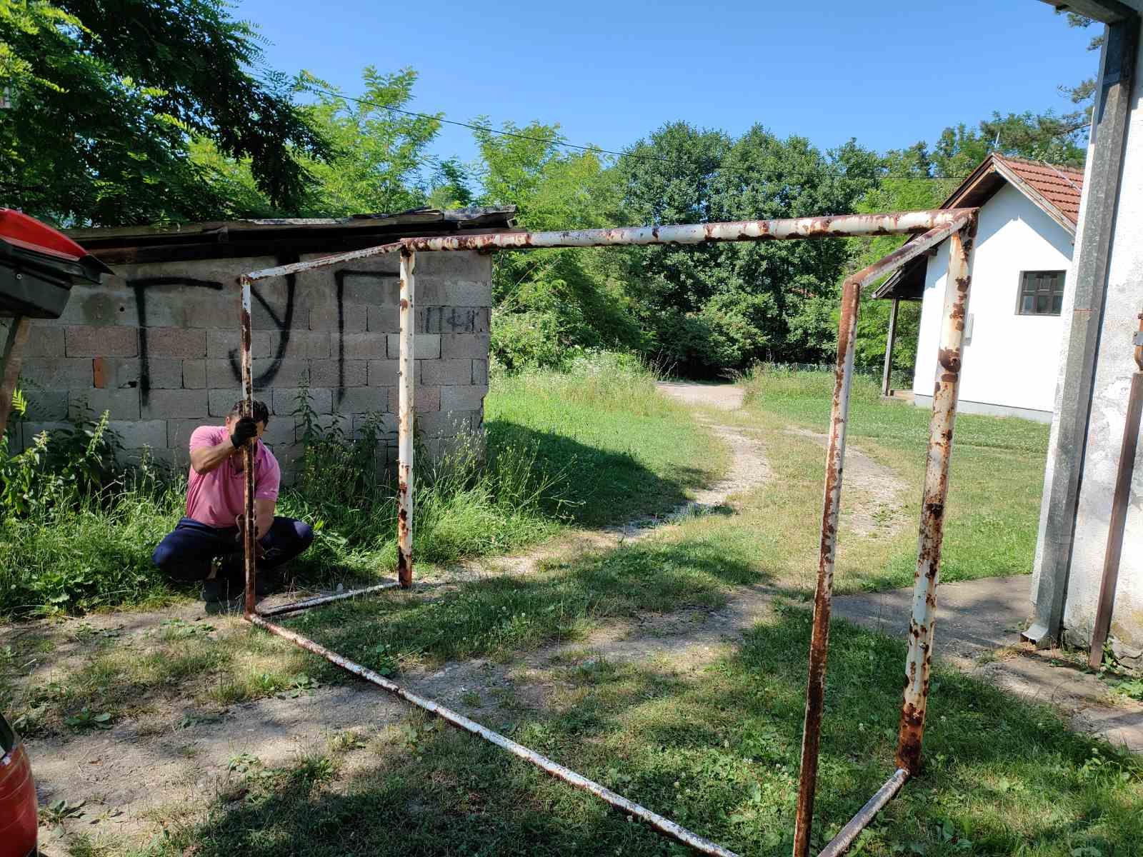 Prvo smo raskrčili prilaz igralištu i poravnali zemlju oko igrališta. Nakon toga smo uz pomoć mještana zavarili kontrukciju od koševa i golova koje su bile popucale, i ofarbali iste.