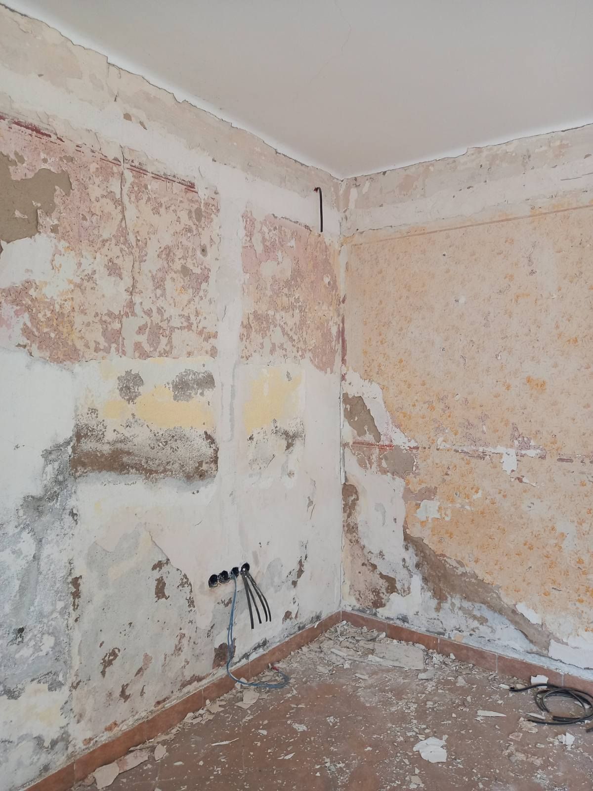 Dok su se prozori postavljali mi smo sa volonterima krenuli sa guljenjem zidova i pripremom za elektičarske radove.