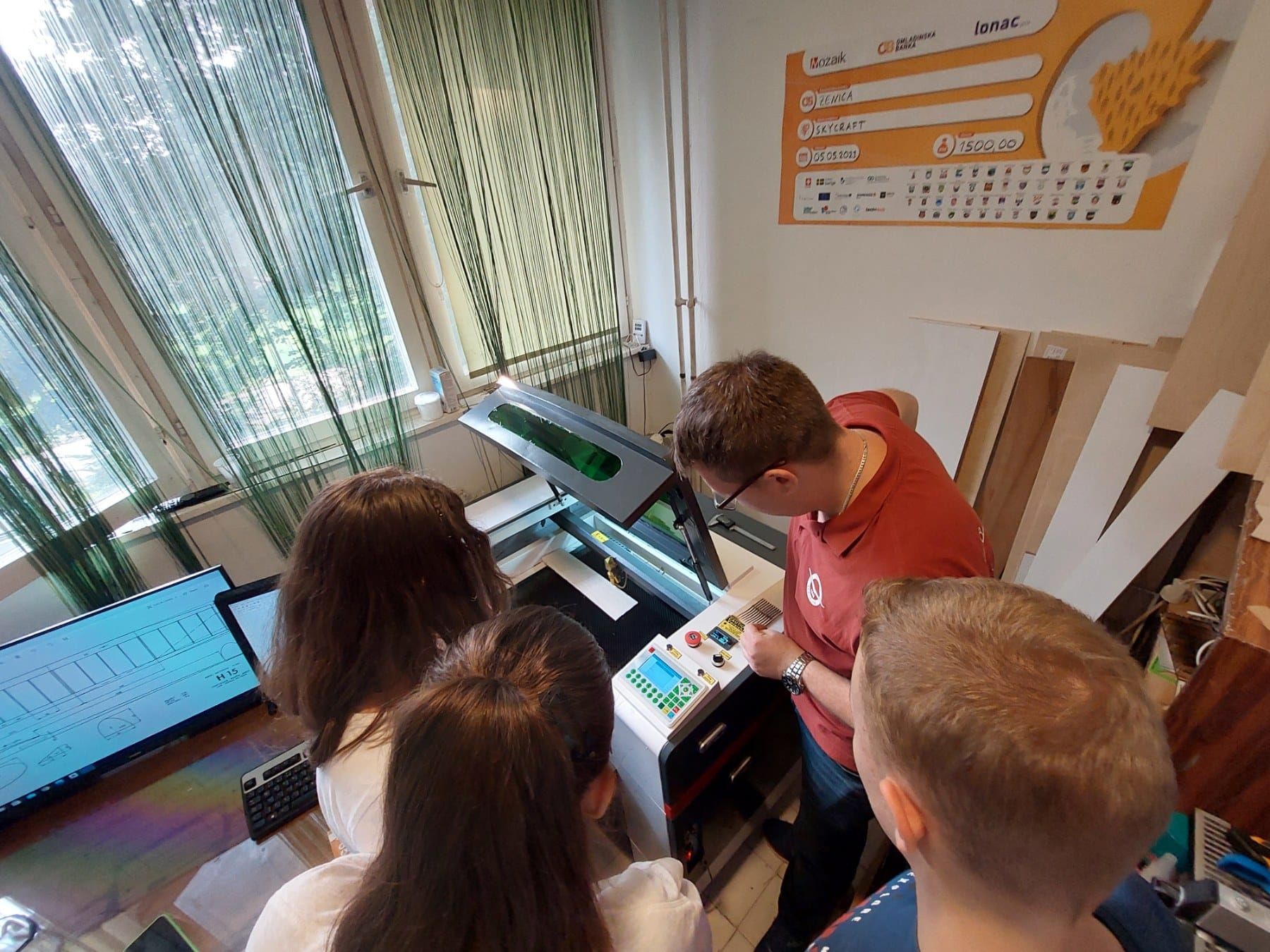 U drugom dijelu radionice, polaznicima je prezentirana CNC laser mašina koju Aero klub koristi za izradu modela aviona. Naši polaznici su uspješno savladali osnove rada na mašini i samostalno izradili svoje prve dijelove modela aviona.