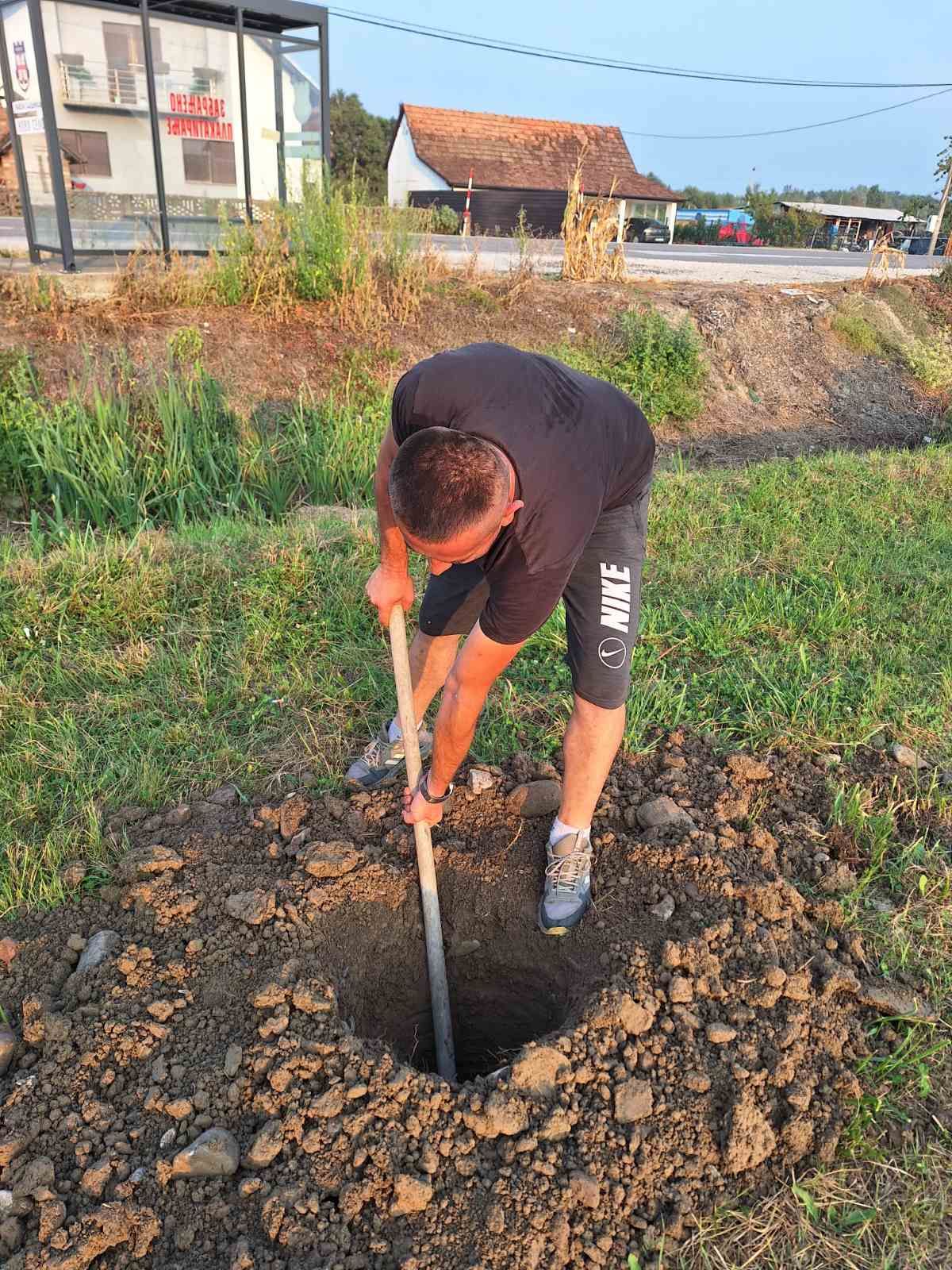 Uz nažalost nekoliko tehničkih problema sa mašinom, jer konfiguracija terena u jednom dijelu nije dozvoljavala iskopavanje od strane ljudskih snaga i ulaganja raspoloživih snaga od strane istih, uspjeli smo da završimo iskopavanje rupa za postavljanje zaštitnih stubova za zaštitnu ogradu.