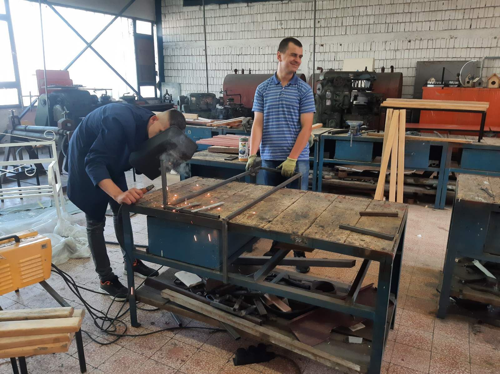 Nakon pripreme materijala, volonteri su prešli na fazu zavarivanja metalnih konstrukcija klupa. U ovom dijelu procesa, volonteri su primjenjivali svoje novo stečene vještine zavarivanja kako bi spojili dijelove čeličnih profila i stvorili okvire klupa.