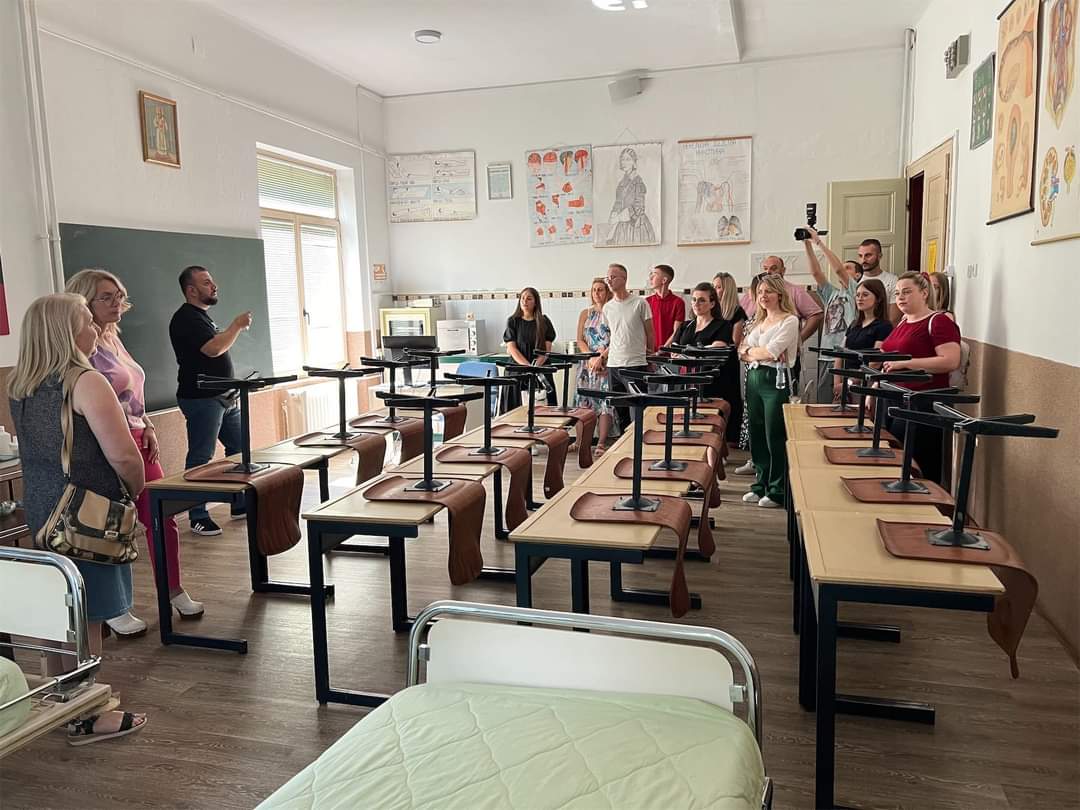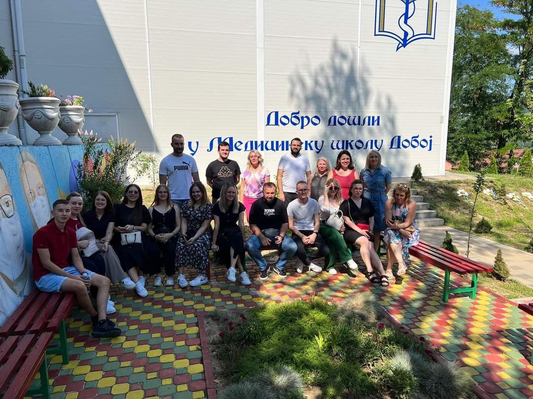 Dalju posjetu nastavili smo u Medicinskoj školi Doboj, koja je godinama unazad pisala i i realizovala sjajne projekte uz podršku Omladinske banke. Direktorica škole, Milena Damjanović i njene kolege, profesori sproveli su nas kroz kabinete praktične nastave za koje su nabavili opremu i nastavna sredstva za izvođenje praktične nastave, te su nam prezentovali do sada realizovane projekte, kao i projekat uređenja dvorišta, koji dodatno uljepšava školu.