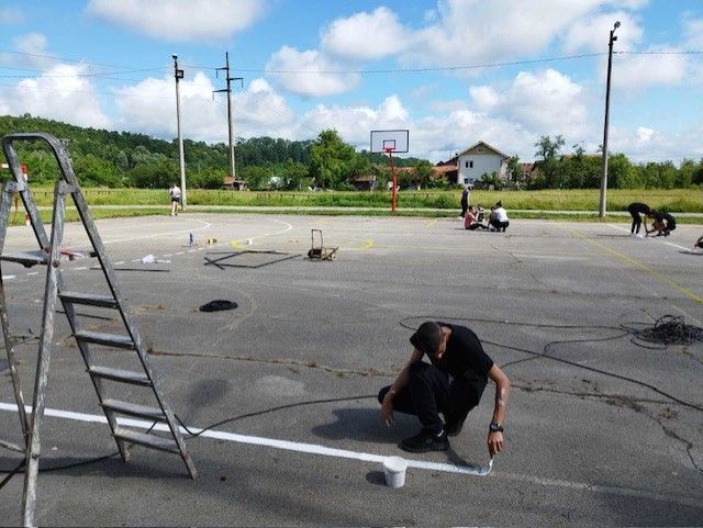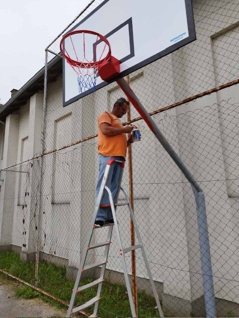 Izvršeno je detaljno čišćenje terena (uklonjena je trava između pukotina, očišćeni su rubovi uz zid i otklonjen je višak zemlje u krugu igrališta); korozirale konstrukcije za koševe i golove su prešmirglane i ofarbane; stare košarkaške table i obruči su zamijenjeni novim i kvalitetnijim.