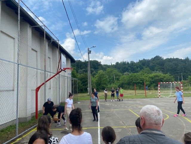 Na kraju, kada su svi radovi bili završeni, odigrali smo mali turnih u kome su učestovali nastavnici i učenici škole. Odigrano je par košarkaških i fudbalskih utakmica i tako je sportski teren pušten u funkciju.