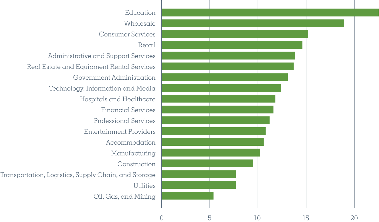 🔸 Povećanje broja talenata po branši kada se koristi Skills First koncept u odnosu na zapošljavanje samo na osnovu naziva radnog mjesta: