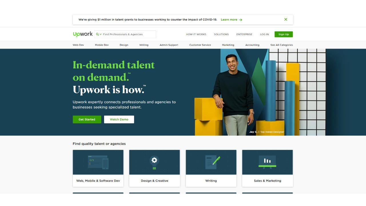 Upwork (ili Elance-oDesk do 2015.) je vodeća online platforma koja spaja klijente zajedno sa freelancerima ili agencijama kroz različite kategorije poslova. Klijenti postavljaju oglase za poslove nakon čega od freelancera dobijaju različite ponude u kojima opisuju kako, za koju cifru i u kojem vremenskom periodu mogu da završe zadani posao.