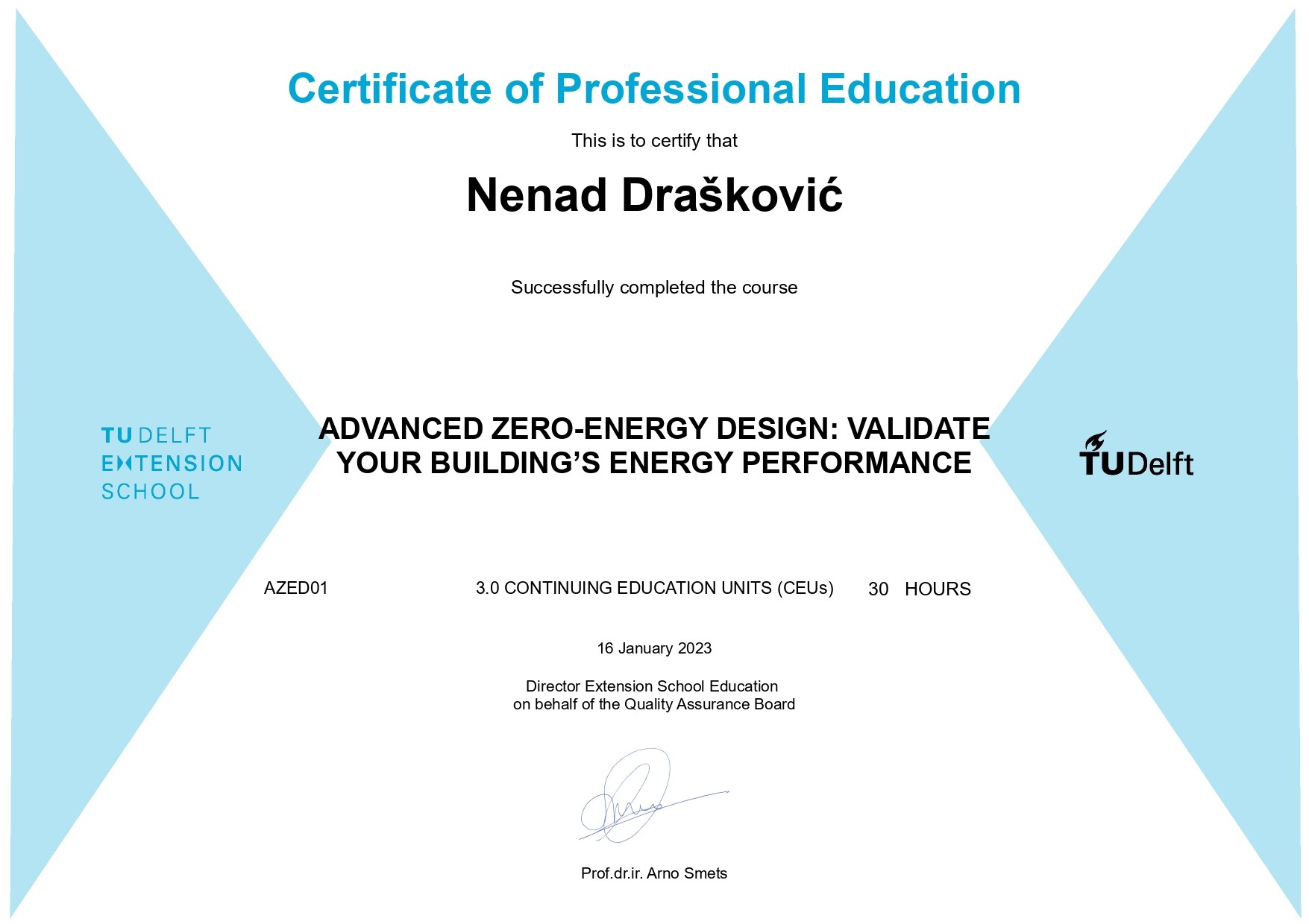 Ovim člankom želim da predstavim moju poslovnu ideju o osnivanju projektnog studija za dizajn zgrada sa nultim utroškom energije. Za pomenutu poslovnu ideju sam osvojio treću nagradu u okviru Akcelerator programa koji je realizovala RARS. Sredstva od nagrade sam investirao u dodatno školovanje na TU Delft (Holandija), i za uspješno urađen projekat kojim se potvrđuju energetske performanse višeporodične stambene zgrade zasluženo sam dobio odgovarajući certifikat.