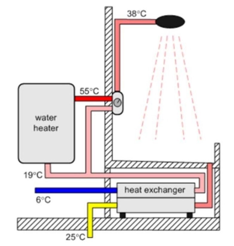 Slika 4. Integrisana šema energetskog redizajna optimizovane zgrade Slika 5.Šema rada izmjenjivača toplote i bojlera za korištenje upotrebljene tople vode