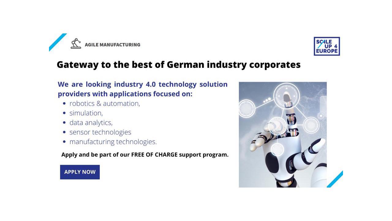Da li ste dobavljač tehnološkog rješenja na području AGILE MANUFACTURING? Tražite li strateškog partnera, investitora, razvojnu suradnju, korisničko iskustvo za demo projekt ili samo želite svoje rješenje predstaviti potencijalnom kupcu?