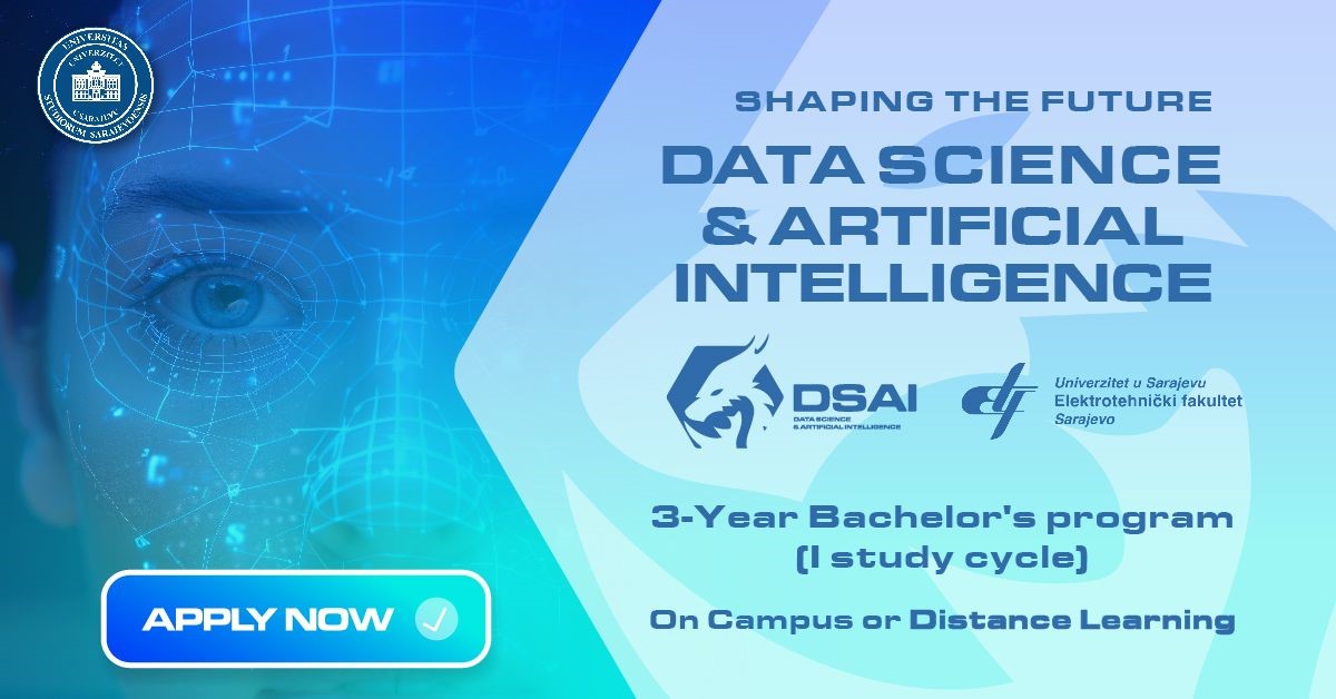 Elektrotehnički fakultet (ETF) Univerziteta u Sarajevu s ponosom je u junu ove godine najavio pokretanje novog studijskog programa na engleskom jeziku pod nazivom “Data Science and Artificial Intelligence” (DSAI).