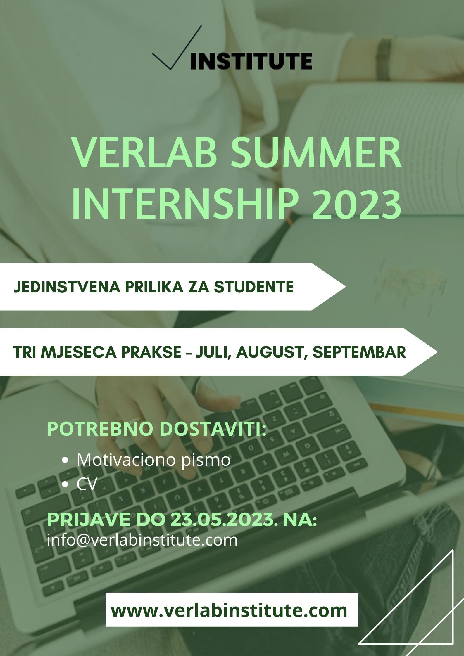 Poziv za prijave je otvoren do 23.05.2023. Uz prijavu poslati motivaciono pismo i CV na info@verlabinstitute.com.