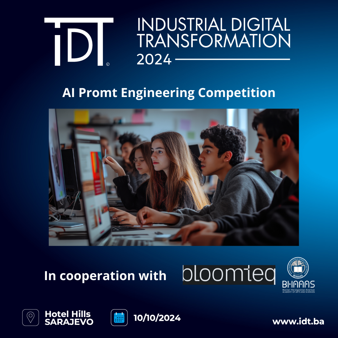 Da li vas fascinira umjetna inteligencija (AI) i želite li da pokažete svoje vještine u prompt inženjeringu? Pridružite nam se na AI Prompt Engineering Competition u okviru IDT2024 konferencije, gdje se kreativnost susreće sa tehnologijom!