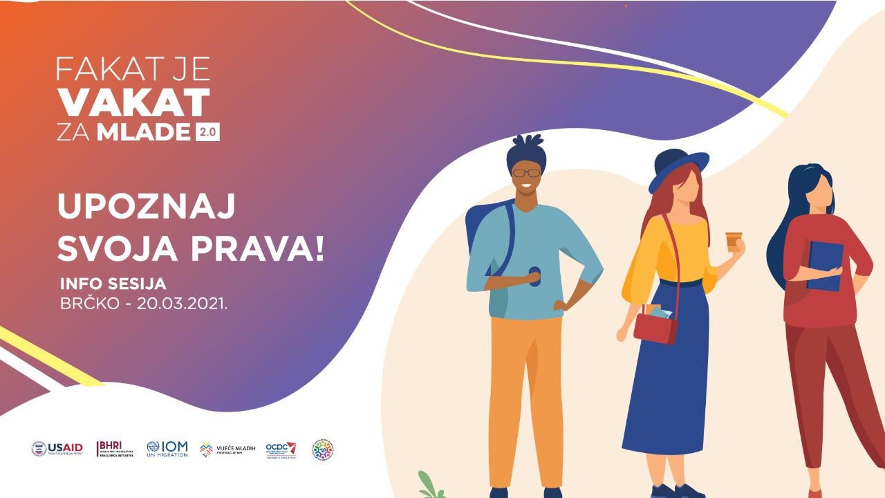 Vijeće mladih Federacije BiH, Omladinski savjet Republike Srpske i Vijeće/Savjet mladih Brčko distrikta BiH ti nude priliku da budeš dio jednodnevnih info sesija i da kroz druženje i učenje upoznaš svoja prava. Danas upoznaj svoja prava, a već sutra kreiraj zajednicu po svojoj mjeri jer fakat je vakat za mlade!