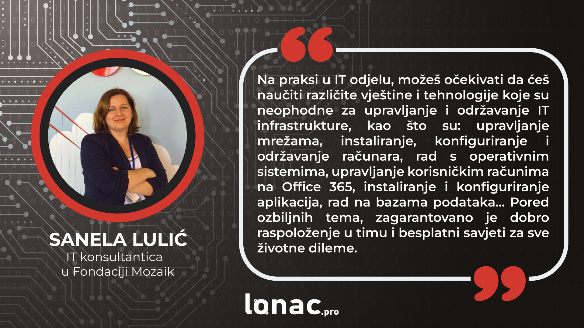 Ovo će biti sasvim dovoljno da te Sanela Lulić, tvoja buduća IT mentorica, nauči novim vještinama i alatima, a evo kako izgleda rad sa njom:
