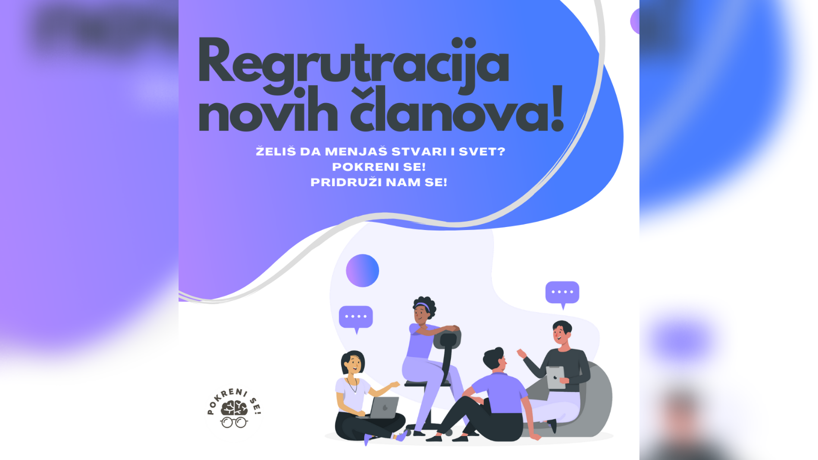Želiš da mijenjaš stvari i svijet? Pokreni se! Organizacija ”Pokreni se mladi!” otvara prijave za regrutaciju, pa tako izvoli i zauzmi mjesto u njihovoj porodici! Osobine koje bi trebalo da posjeduješ su: sposobnost za timski rad, odgovornost, kreativnost, spremnost za poštovanje pravila organizacije i tima za koji se prijavljuješ, spremnost za učenje i razvijanje.