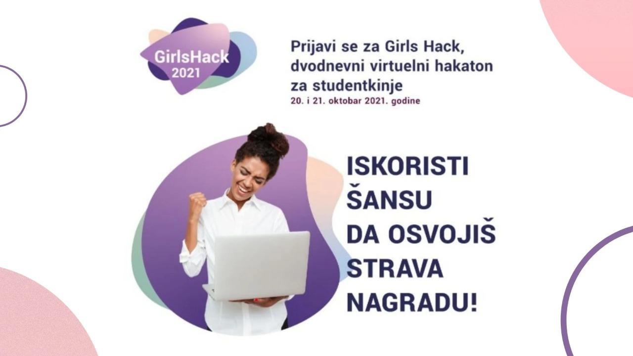 Virtuelni Hakaton – GirlsHack 2021 održaće se online u okviru petog po redu Women’s Leadership Summit-a, 20. i 21. oktobra 2021. GirlsHack je namjenjen studenticama tehničkih, biznis i umjetničkih fakulteta koje su zainteresovane da upoznaju mentorice iz tehnoloških kompanija i zajedno sa njima u grupi od 5 studentica, razvijaju idejno rješenje koje će doprinijeti rješavanju tehnoloških izazova.
