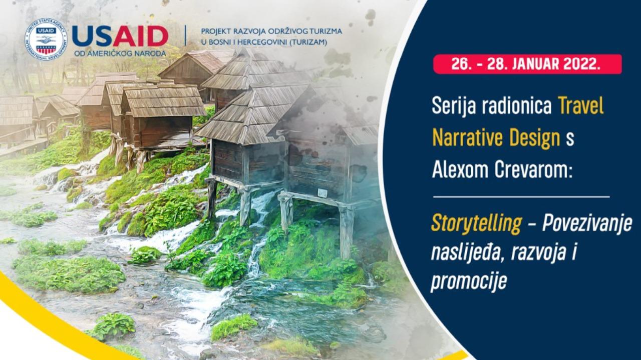 Pozivamo bh. turističku industriju, sve medije (tradicionalne i digitalne) i turističke organizacije da nam se pridruže 28. januara od 13:30 do 16:30 sati na webinaru „Stvaranje privlačnog turističkog sadržaja kroz storytelling“ kako bi naučili tehnike storytellinga za turističko medijsko izvještavanje.