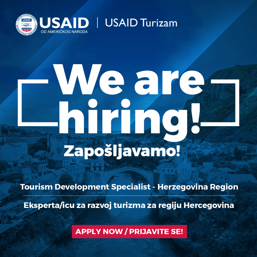 Pridružite se inspirativnom i marljivom timu USAID Turizam projekta i iskoristite svoje znanje i iskustvo da transformišete Bosnu i Hercegovinu (BiH) u najuzbudljiviju destinaciju!
