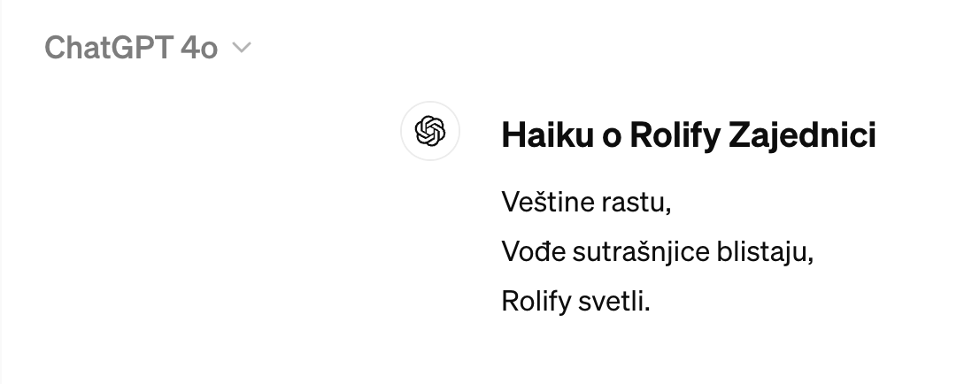 Naravno da sam morala da mu tražim da napiše haiku za Rolify zajednicu i evo kako je to ispalo: