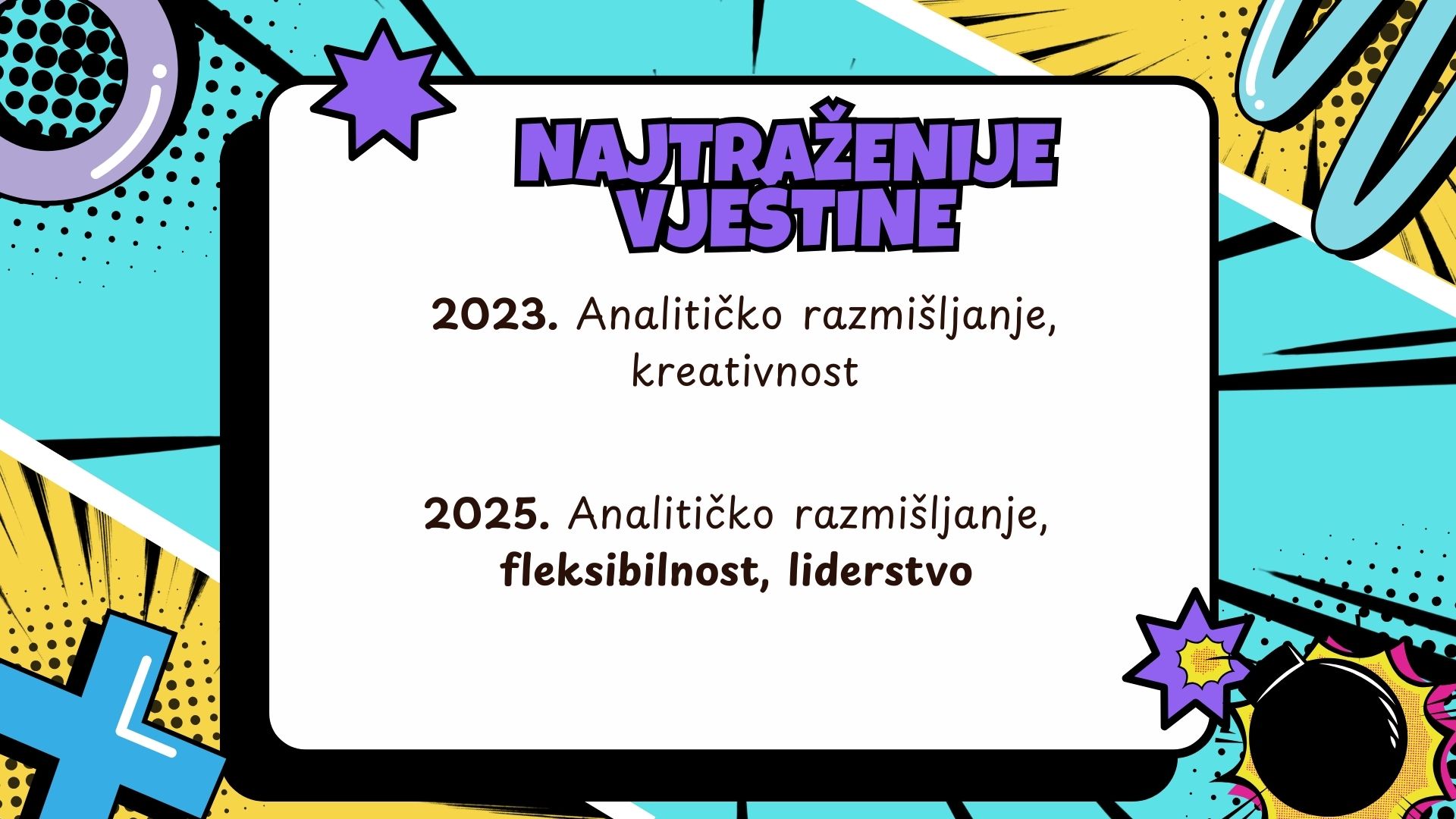 Šta ovo znači za mlade u BiH? Ovi podaci nisu samo globalni trendovi, već i realnost koja utiče na mlade profesionalce u BiH. Poslodavci sve više traže kombinaciju analitičkog razmišljanja, tehničkih znanja i mekih vještina poput liderstva i fleksibilnosti. Ovo je prilika da preuzmeš inicijativu i investiraš u svoj razvoj.