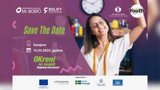 MI-BOSPO i EBRD u saradnji sa Rolify organizuju događaj “OKreni na uspjeh – registruj svoj biznis”, na kojem će biti predstavljen Program podrške za registraciju biznisa mladih, koji je dio projekta za Mlade u biznisu do 35 godina.