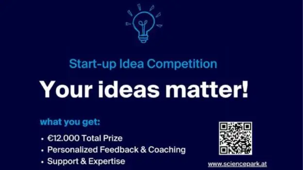 Start-up Idea Competition ti pruža priliku da svoju viziju pretvoriš u stvarnost i osvojiš dio nagradnog fonda od 12.000€. Uz mentorstvo stručnjaka i stručnjakinja iz Science Park Graz, možeš unaprijediti svoju ideju i ostvariti stvarni uticaj. Prijavi se do 28. februara 2025. i osvoji nagrade u jednoj od pet inovativnih kategorija!