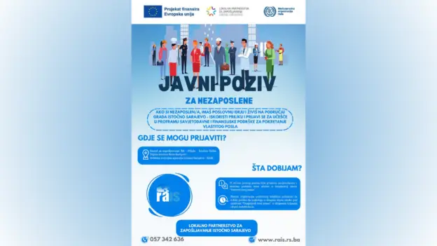 Javni poziv za nezaposlene osobe sa područja Istočnog Sarajeva za učešće na obukama „Započni i unaprijedi svoj posao“