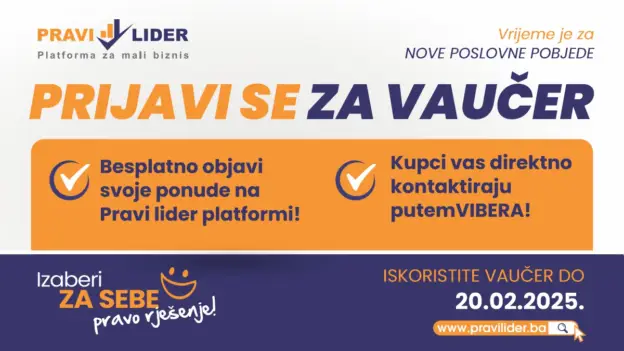 Pridruži se platformi Pravi lider i iskoristi vaučer za besplatnu promociju, upis u poslovni imenik, savjete stručnjaka i edukativne materijale. 📝
