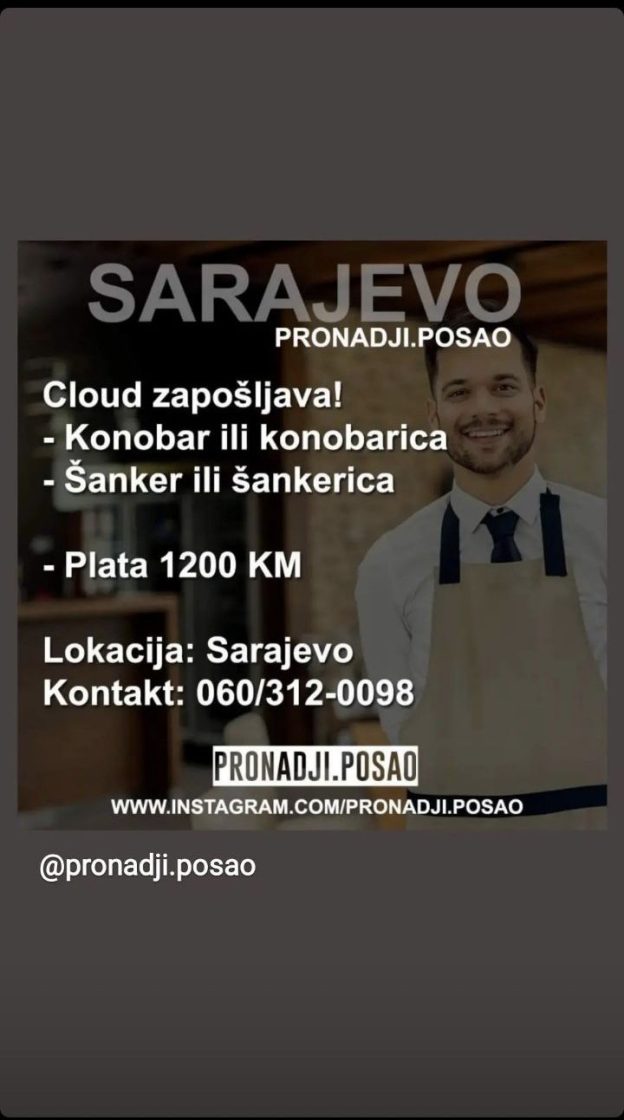 Kafić Cloud zapošljava konobara/icu i šankera/icu.