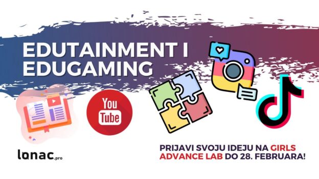 Voliš online sadržaje u vidu EduTainment-a i EduGaming-a? 🎮🎥🧩 Prijavi svoju ideju na Girls Advance Lab do 31. januara 2021. godine, sama ili u timu do maksimalno šest osoba.